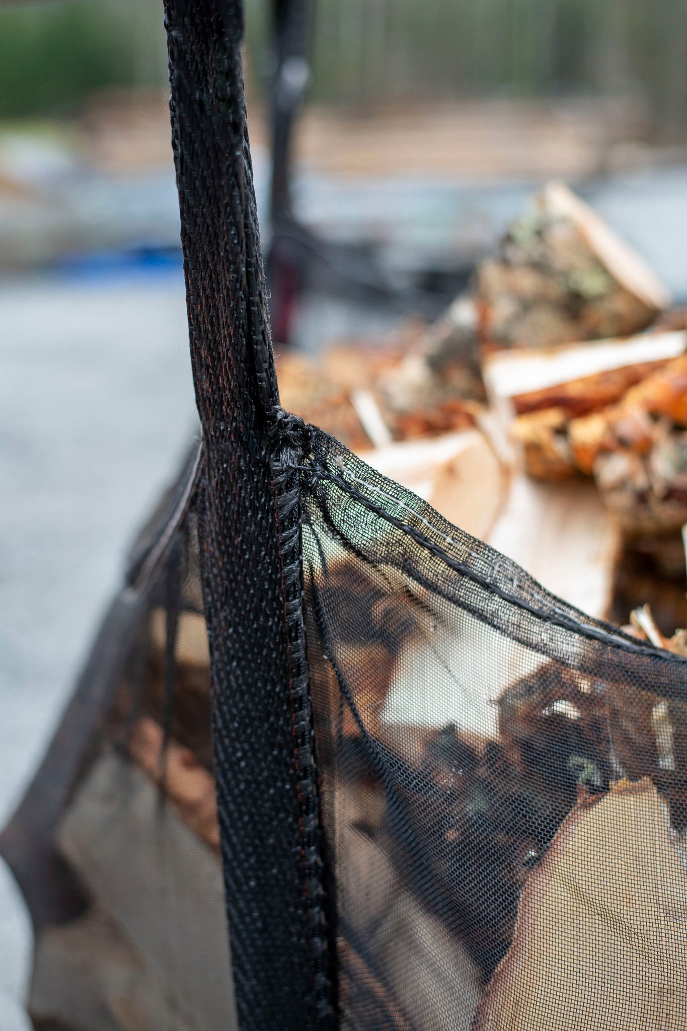 Säcken har fyra lyftöglor och fyra bottenöglor som ger trygg och smidig hantering, oavsett om du arbetar med traktor, kran eller manuell lastning. Det integrerade locket gör att veden hålls skyddad under hela processen, samtidigt som luftflödet fortsätter att arbeta för dig.
