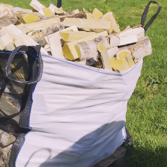 Vedsäcken har 4 st starka lyftöglor uppe och 4 st hållbara tömningsöglor på botten.