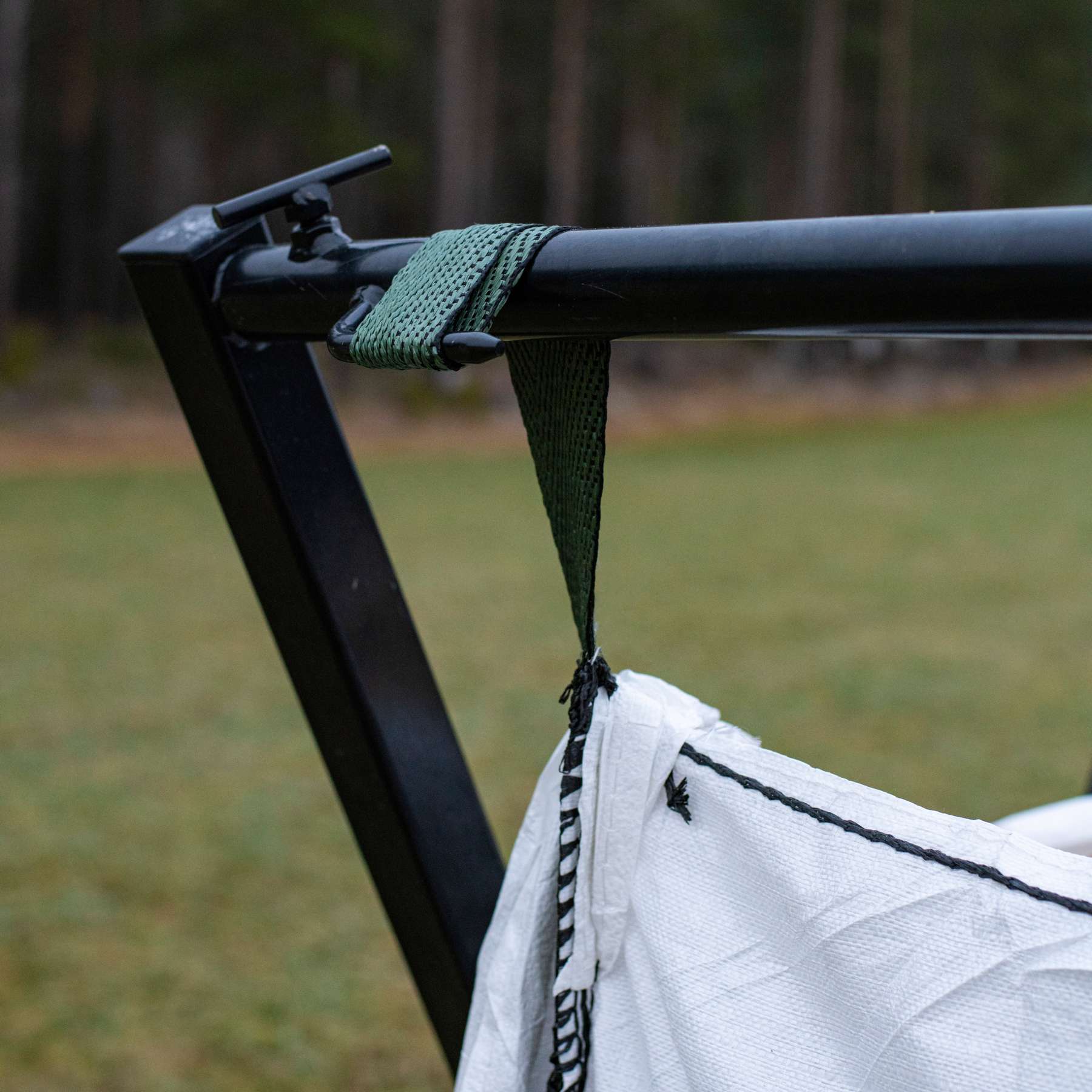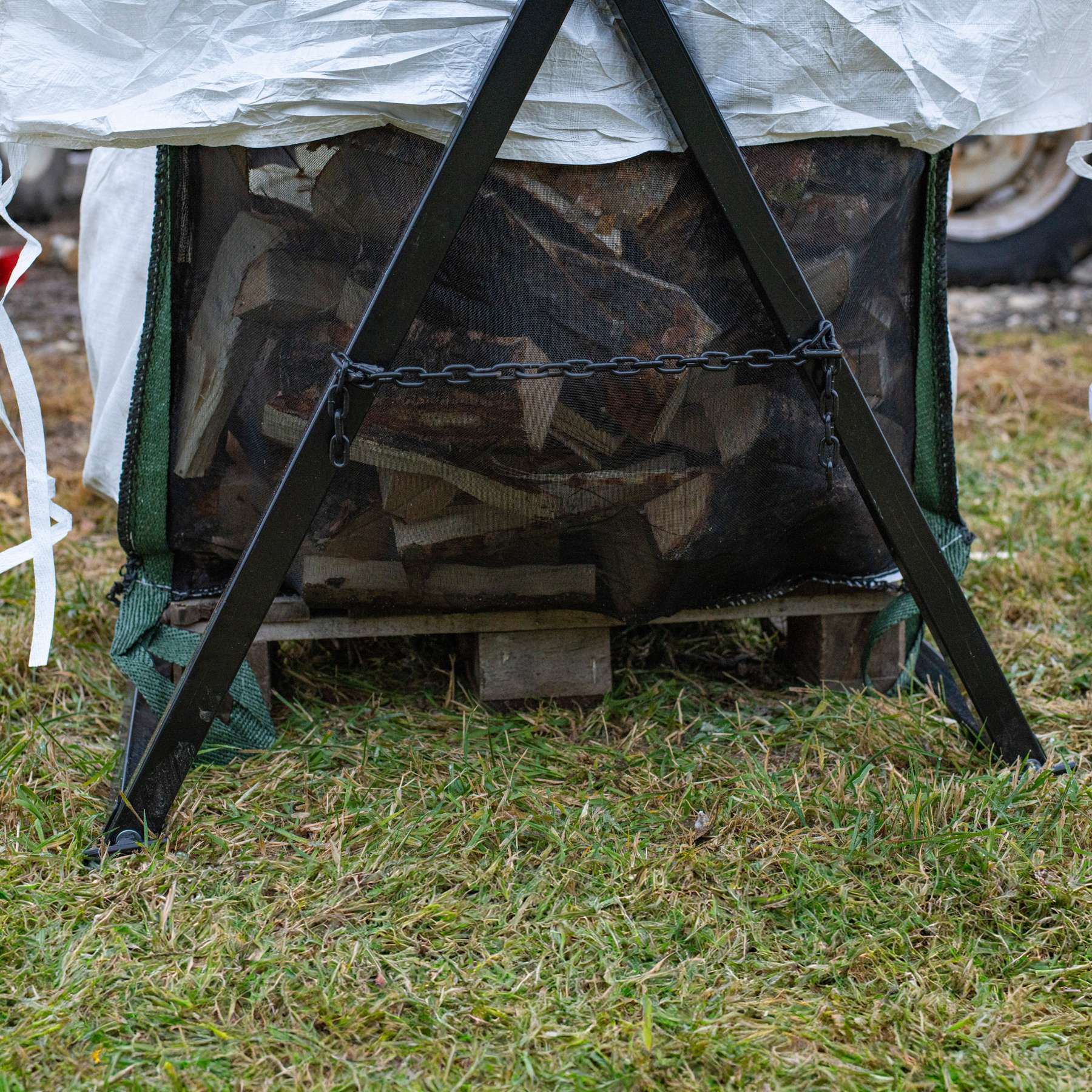 Stativ för storsäckar i lackerat stål. Enkel montering. Stativet är justerbart i höjd och bredd, och är ihopfällbar. Smart lösning för att fästa och lossa lyftöglorna på säcken.