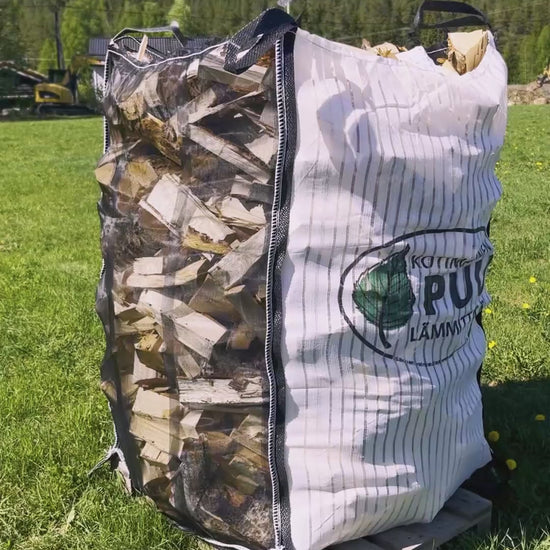 XXL-SALLA är en mycket hållbar 2 m³ vedsäck med väldigt bra ventilation som hjälper den färska veden att torka snabbt under förvaringen. SALLA säckarna har två sidor vita luftrandiga vedsäcksnät samt två sidor ventilerande svart HDPE vävd ”myggnät”. Säckens struktur tillför möjligheten att torka ved året runt och säcken är även lämplig för mekanisk varmluftstorkning (+70 C). Säckens material skyddar veden effektivt från regn och snö. Säcken har 4 st lyftöglor uppe och 4 st tömningsöglor på botten. Du hittar på SALLA säckarna en stilig ”Inhemsk ved värmer” – logga. Alla våra vedsäckar är tillverkade inom EU och du kan använda dem flera gånger. I SALLA familjen ingår 3 olika storlekar: 1 m³ LILL-SALLA, 1,5 m³ STOR-SALLA och 2 m³ XXL-SALLA.